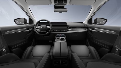 Два больших дисплея диагональю 12,3 дюймов каждый, вращающийся селектор трансмиссии, необычный парящий дизайн сенсорного блока климат-контроля — интерьер JAC JS6 выглядит стильно и подкупает продуманной эргономикой.
