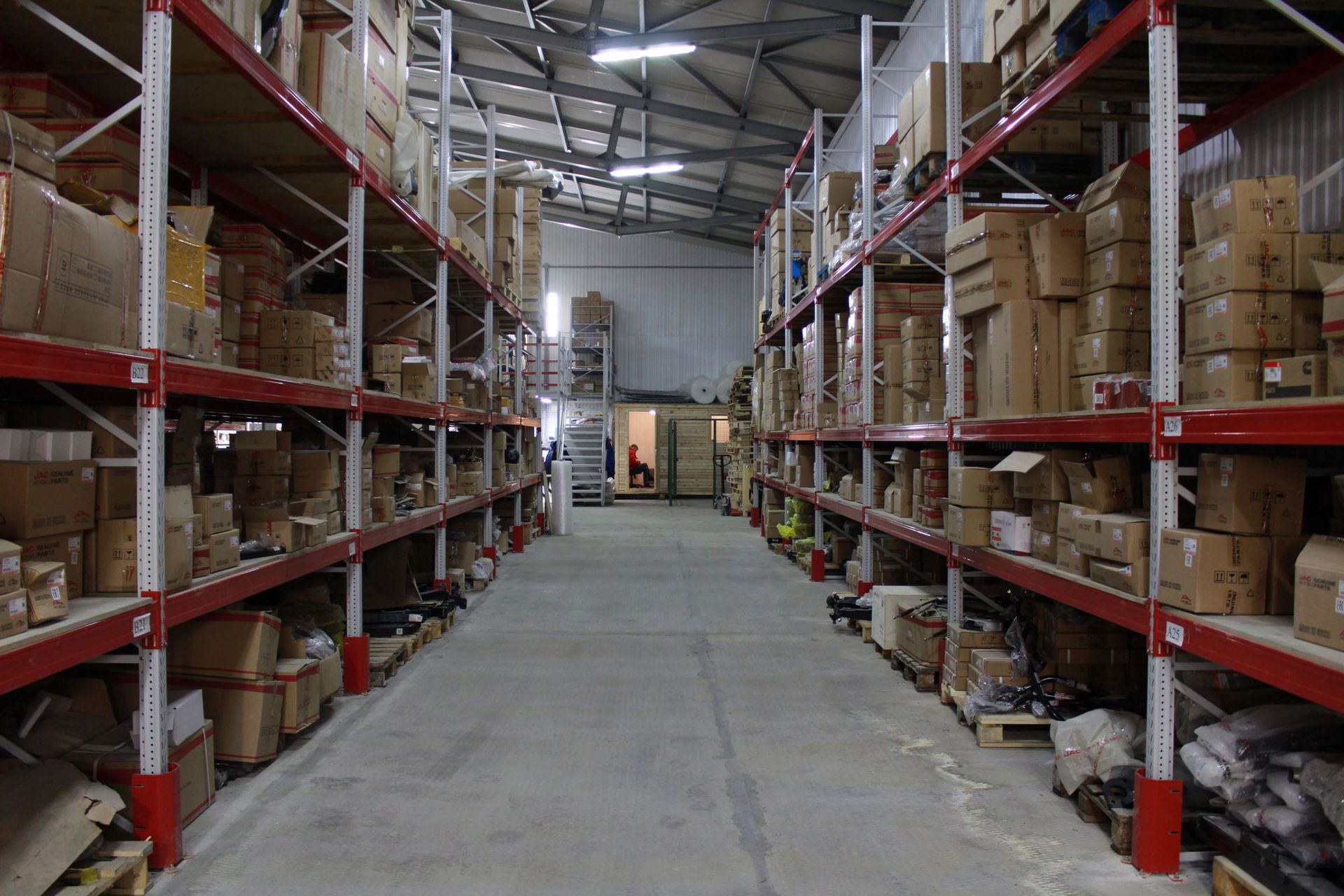 Площадь склада составляет более 1200 кв. м. На складе поддерживается постоянный ассортимент запасных частей и расходных материалов, необходимых для проведения ремонта и плановых ТО. В данный момент номенклатура составляет более 10 000 наименований деталей.